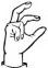 На ћирилици написано ЗОРАНА БЕЛЕНЗАДА састоји се из 15 слова [?]. Исписано ћириличном једноручном азбуком за глувонеме: